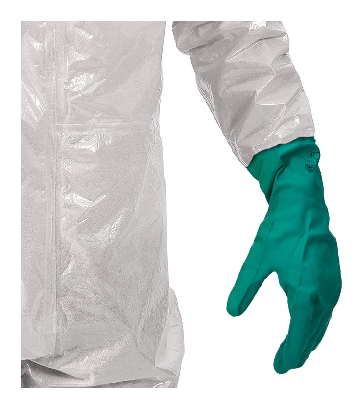 Fest angearbeitete silikonfreie KCL Camatril 730 Handschuhe aus Nitril runden den Anzug ab. Der Handschuhe bietet ihnen eine gute Abrieb-, Stich- und Schnittfestigkeit, ist beständig gegen Säuren, Laugen, langkettige Alkohole und aliphatische und alicyclische Kohlenwasserstoffe.