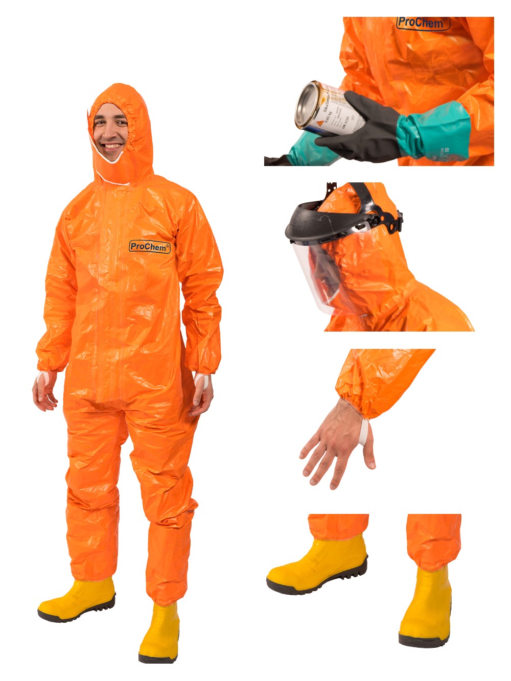 Der ProChem® I wird vornehmlich in der Industrie- und Tankreinigung, bei Inspektionsarbeiten und bei Einsätzen von Feuerwehren und Rettungskräften verwendet. Gummizüge an Ärmeln, Beinen und Kapuze sowie ein Taillengummi sorgen für eine optimale Passform und der großzügig geschnittene Schrittbereich für optimale Bewegungsfreiheit. Die ergonomische Kapuze und die erhöhte doppelte Abdeckblende mit Klettverschluss über dem Reißverschluss bis zum Kinn bieten zusätzlichen Schutz. Elastische Daumenschlaufen verhindern das Hochrutschen der Ärmel bei Überkopfarbeiten.