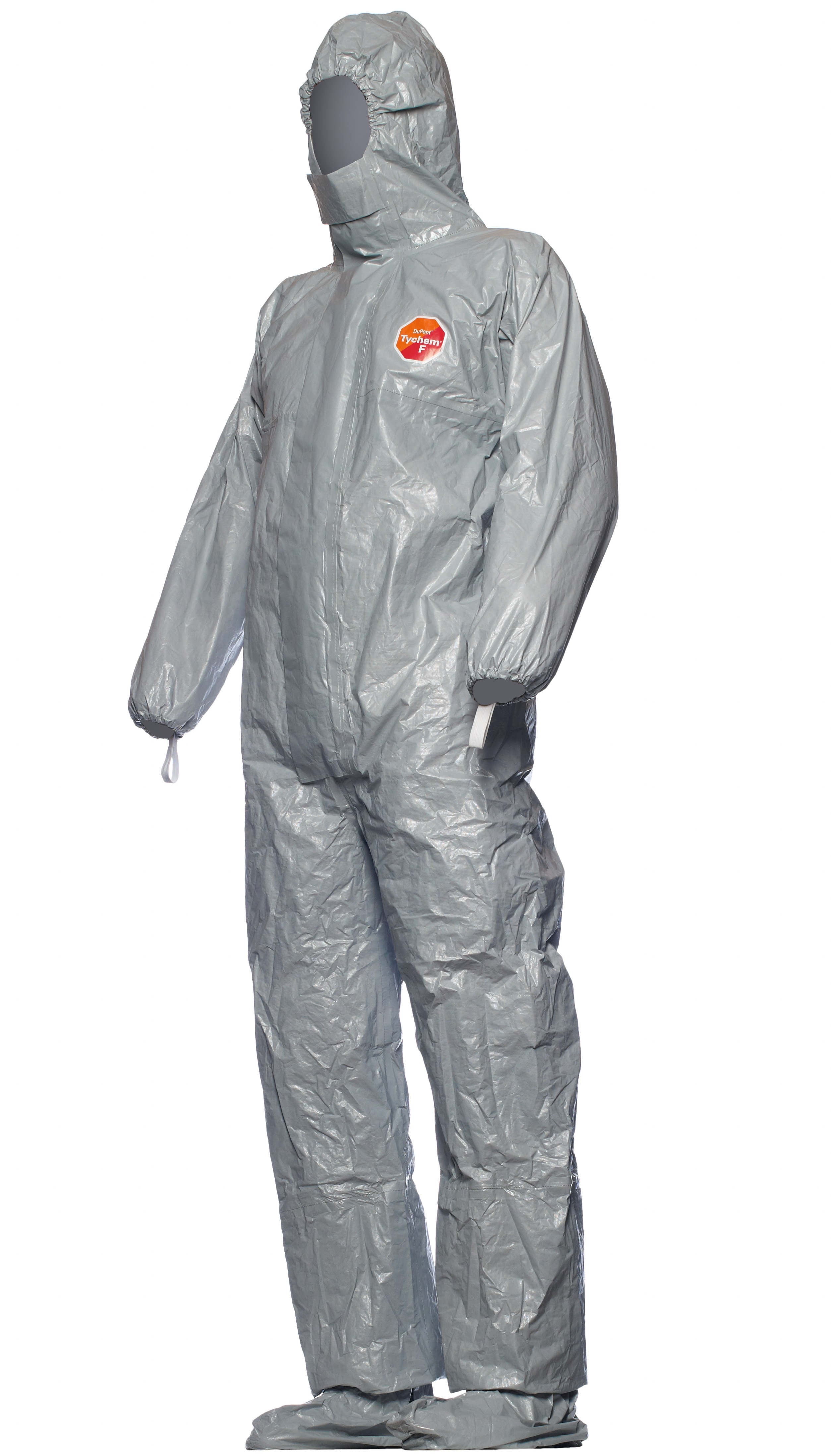 DuPont Tychem-F CHA6 Schutzoverall mit Füßlingen Kat. III Typ 3B + 4B + 5B + 6B