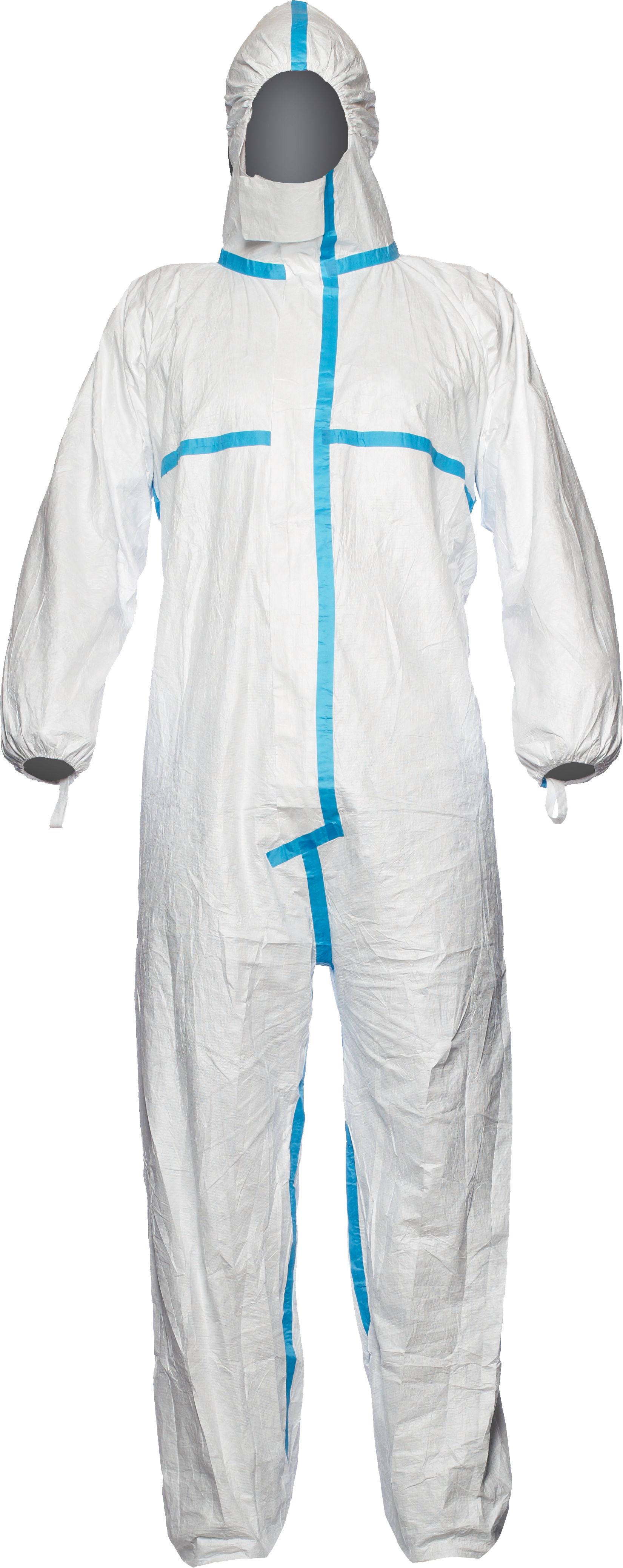 - selbstklebende Reißverschluss- und Kinnabdeckung (für dichten Abschluss an der Atemschutzmaske)