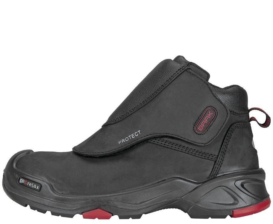 Robuster Sicherheits-Schweißerstiefel mit bequemer Passform; EN ISO 20345 S3 WG HRO SRC HI; Schaft aus hochwertigem, vollnarbigem LWG-Rindleder, kombiniert mit Nappaleder, reflektierenden Applikationen; Klimaregulierendes Textilfutter; besonders reißfestes, robustes und feuerfestes Garn; Weich dämpfende Baak PU-Softstep+ Einlegesohle (orthopädisch anpassbar), atmungsaktiv mit hoher Feuchtigkeitsaufnahme und -abgabe, antibakteriell; Baak® go&relax-System zum fußgerechten Abknicken, bestehend aus Baak Stahl-Flexkappe & grobstolliger PU/Nitril-Sohle mit Baak-Flexzone im Ballenbereich und integriertem H-Kopplungselement; PU-Überkappe; Laufsohle hitzebeständig bis 300°C bei kurzzeitiger Belastung; besonders rutschhemmend; Zertifiziert für orth. Einlegesohlen nach DGUV Regel 112-191; Stahl-Flex-Zehenschutzkappe für gute Zehenfreiheit; Textiler, flexibler Durchtrittschutz; Größe 38-48 in Weite 11