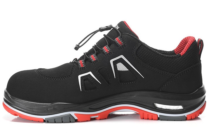Wer eine Sicherheitssandale sucht, die genauso tough ist wie ein herkömmlicher Sicherheitsschuh, aber lockerer in der Handhabung und absolut bequem, wird diesen Allrounder zu schätzen wissen: Der ALAN XXTP black-red Easy ESD S1PS ist besonders da die beste Wahl, wo höhere Temperaturen an der Tagesordnung sind und ein atmungsaktives Schuhwerk unbedingt zu empfehlen ist. Wer will schon bei Hitze in klobigen, schwitzigen Schuhen arbeiten? Und das auch noch den ganzen Tag? Darum besteht hier das Obermaterial aus Mikrofaser und Textil, was im Zusammenspiel mit dem atmungsaktiven Textilfutter für eine gute Luftzirkulation sorgt. Dank dem Schnürsystem mit der individuellen Schnellarretierung sitzt die Sandale schnell und passformgenau am Fuß. Mit der Kunststoffkappe ist besonderer Schutz gegen herunterfallende Objekte gegeben und der textile Durchtrittschutz wehrt spitze Gegenstände am Boden ab. Das Besondere hier ist die Zweischichtensohle WELLMAXX TRAINERS POWER aus TPU/PU. Sie ist dynamisch, sehr flexibel und sorgt für eine exzellente Rutschhemmung. Außerdem steckt im Sohlenkern Infinergy® von BASF, das sorgt wie bei all unseren WELLMAXX-Schuhen für eine perfekte Dämpfung. Bestellen lässt sich die ESD-fähige Sicherheitssandale im Größengang 35 bis 49.