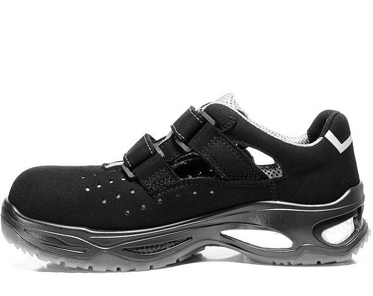 Luftdurchlässig und trotzdem robust: der ETHAN Easy ESD S1 besticht nicht nur durch seine leichte Bauweise, sondern auch die innovative Wellmaxx-Sohle, die den Träger dank hervorragender Dämpfungseigenschaften beschwingt durch den Arbeitstag gehen lässt. Das Mikrofaser-Obermaterial ist perfekt geeignet für Gerbstoffallergiker und macht ihn zudem sehr atmungsaktiv und einfach zu pflegen. Dank der Kunststoffkappe ist diese Sicherheitssandale komplett metallfrei, was beispielsweise das Ausziehen am Flughafen erspart und die Arbeit in metallsensiblen Bereichen ermöglicht. Mit Hilfe der Klettverschlüsse lässt sich die Sicherheitssandale schnell und einfach öffnen und schließen. Die gepolsterte Lasche erhöht noch einmal den Tragekomfort. ESD-Fähigkeit, eine rutschhemmende Laufsohle und das angebrachte Reflexmaterial bieten zusätzliche Sicherheit. Für Beschäftigte, die orthopädische Anpassungen benötigen, ist die Sicherheitssandle gemäß DGUV 112-192 für orthopädische Anpassungen zugelassen. Erhältlich ist der ETHAN Easy in den Größen 40-48.
