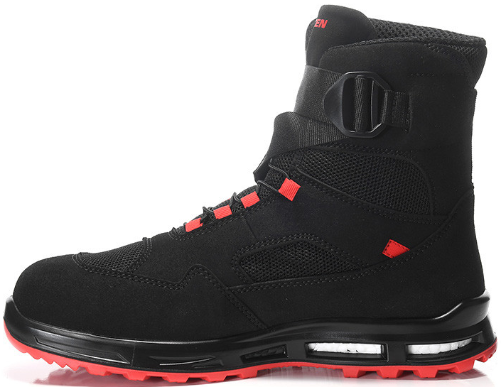 Umknicken, Ausrutschen, Stolpern – bei der täglichen Arbeit drohen schwerwiegende Verletzungen, wenn man nicht richtig aufpasst. Wie gut, dass es Sicherheitsstiefel wie den LAKERS XXT BTG Mid ESD S1PS gibt, die für die nötige Sicherheit sorgen. So kann man sich besser auf seine Arbeit konzentrieren, ohne bei jedem Schritt peinlich genau hingucken zu müssen, wo man hintritt. Dieser Stiefel hier ist mit dem Umknickschutz BETTERGUARDS® ausgerüstet, einer innovativen Technologie, die das Arbeitsleben rundum sicherer macht. Hierbei handelt es sich um ein System, das in kritischen Situationen aktiviert wird und innerhalb von Millisekunden das Sprunggelenk stabilisiert. Von der Funktionsweise lässt sich das mit der eines Sicherheitsgurts vergleichen. Das im Stiefel angebrachte System tritt nur bei Umknickgefahr in Aktion, ansonsten ermöglicht es ein bequemes, beschwerdefreies Laufen. Der schicke Stiefel aus Mikrofaser/Meshmaterial und atmungsaktivem Textilfutter ist außerdem mit einer exzellenten Rutschhemmung versehen (SR-zertifiziert). Die PU/PU Sohle XXT besitzt zudem einen Sohlenkern aus Infinergy® von BASF, was für eine Super-Dämpfung und ein dynamisches Antrittsgefühl sorgt. Darüber hinaus ist der Stiefel mit Kunststoffkappe und metallfreiem Durchtrittschutz mit Anteilen aus recycelten Materialien ausgestattet. Der ESD-fähige, öl- und kraftstoffbeständige Sicherheitsstiefel ist aktuell in vielen Größen verfügbar.