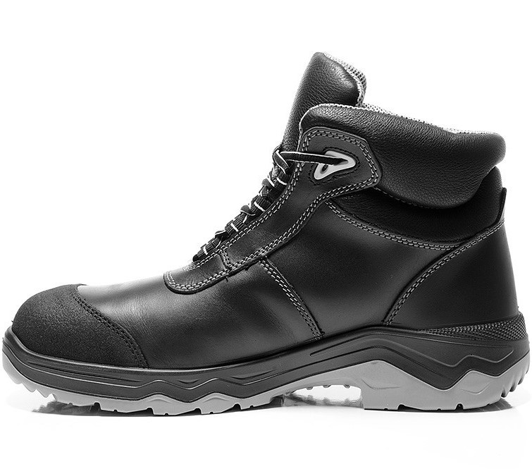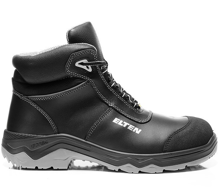 LEROY Mid ESD S2 ist ein Sicherheitsstiefel aus der ELTEN NEW CLASSICS Serie, ESD-fähig und erhältlich in den Größen 38 bis 48. Robuste Materialien und solide Machart zeichnen ihn aus: Das strapazierfähige Rindleder ist sehr widerstandsfähig, und der abriebfeste Spitzenschutz sorgt für die Langlebigkeit des LEROY Mid ESD S2. Dieser Fußschutz darf gemäß DGUV Regel 112-191 orthopädisch angepasst werden: ein großer Vorzug für Beschäftigte, die auf orthopädisch verändertes Schuhwerk angewiesen sind. Im Inneren des Sicherheitsstiefels entsteht durch atmungsaktives textiles Futter ein gutes Schuhklima. Die Zehen werden durch Stahlkappen geschützt, die Laufsohle ‒ in Grau optisch ansprechend vom dunklen Schaft abgesetzt ‒ sorgt für sehr guten Halt auf unsicherem Grund. Bei schlechten Lichtverhältnissen gewährleistet dieser „klassische“ Sicherheitsstiefel zusätzliche Sicherheit durch Reflexmaterial.