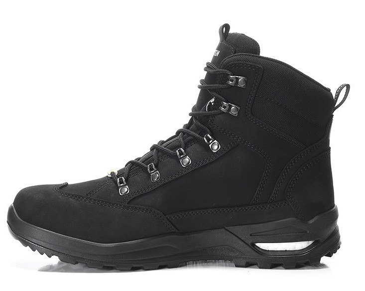 Wer auf der Suche nach einem perfekten Berufsstiefel für den Outdoor-Bereich ist, der wird beim RONAN XXF GTX BLACK MID ESD O2 WR CI fündig. Der Schnürstiefel eignet sich für sämtliche Berufsgruppen, die häufig im freien arbeiten und dabei weder auf Zehen- noch auf Durchtrittschutz angewiesen sind. Und auch für die Freizeit bringt er einige nützliche Features mit, die ihn zu einem wahren Outdoor-Spezialisten machen. Als erstes zu nennen ist die PU/PU Sohle WELLMAXX FLEX. Die ist extrem rutschhemmend, hat ein griffiges Profil und bietet damit auf sämtlichen Untergründen besten Halt. Im Kern der Sohle steckt das revolutionäre Material Infinergy® von BASF. Der Partikelschaum zieht sich bei jedem Schritt stark zusammen und dehnt sich direkt wieder aus – dieser Effekt gibt dem Träger einen Großteil der beim Laufen aufgewendeten Energie zurück. Das ist gut für die Gelenke und hält die Füße länger fit. Besonders wichtig für den Außenbereich ist natürlich die Wasserdichtigkeit des Stiefels. Diese bringt der Stiefel durch das Obermaterial aus hydrophobiertem Nubukleder und die wasserdichte Membran GORE-TEX Performance Comfort Footwear mit. Beides gewährleistet auch eine gute Atmungsaktivität, sodass Schweißfüße in diesem Berufsstiefel keine Chance haben. RONAN XXF GTX BLACK MID ESD O2 WR CI ist ESD-fähig und in den Größen 35 bis 48 bestellbar.