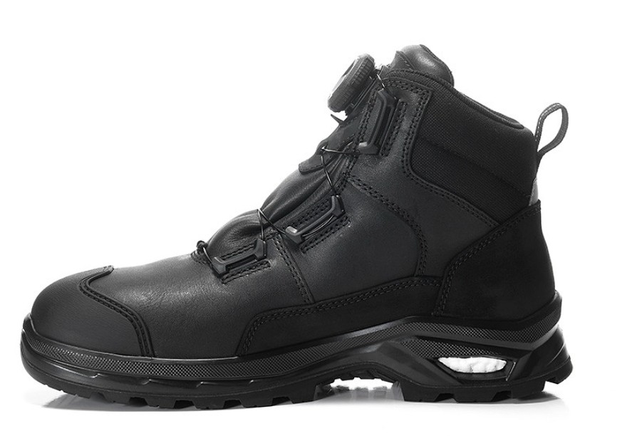 Jeder Schritt auf der Baustelle kann zur Gefahr werden, wenn man nicht die richtigen Schuhe anhat. Unebene Böden, scharfe Kanten, schwere Lasten – es gibt so viel, was unsere Füße vor Herausforderungen stellt. Da braucht es einen Sicherheitsschuh, der unterstützt, dem man vertraut und der uns ganz einfach das Gefühl gibt: hier kann mir so schnell nichts passieren. Der KABRU XXP Pro BOA GTX black Mid ESD S3S WR HI CI ist so ein Schuh. Gefertigt aus hydrophobiertem Rindleder und Nubukleder. Ein robuster Alleskönner aus unserer WELLMAXX-PEAK Serie. Diese Serie vereint die Robustheit von Wanderschuhen mit dem Komfort und der Dämpfung von WELLMAXX-Schuhen.