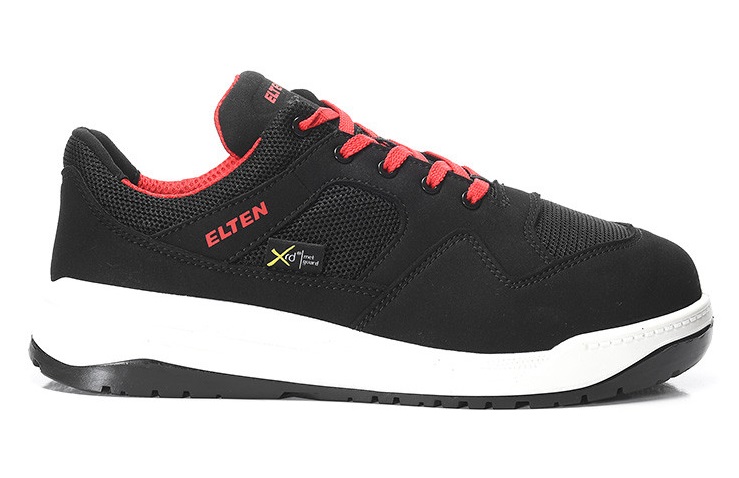 Einmal Fan unserer ELTEN Lakers, immer Fan unserer Lakers. Kann man verstehen, denn auch der LAKERS M black Low ESD S1PS hat viel, was ihn zu einem echten Lieblingssicherheitsschuh macht. Sehr sporty im Design, dank seiner Doppel-PU-Laufsohle trittsicher und top in der Dämpfung, cooler Schwarz-Weiß-Rot-Look und darüber hinaus sehr wendig und sehr sicher. Was dazu kommt: der SR-zertifizierte Sicherheitshalbschuh besitzt eine sogenannte Metatarsal Protection. Ein erweiterter Aufprallschutz, der den Spann des Fußes abdeckt. Das macht den Fuß insgesamt noch sicherer. Sieht man nicht, weil dieser im Inneren wirkt, spürt man aber, wenn mal was auf den Mittelfuß fällt. Beziehungsweise dann spürt man eigentlich nichts. Bequem tragen lässt sich dieser Lakers sowieso, weil das Obermaterial aus Mikrofaser und Mesh sehr angenehm und elastisch ist. Mit dem Futter aus atmungsaktivem Textil ist für Tragekomfort und beständig gutes Innenklima gesorgt. Metallfreier Durchtrittschutz macht den Schuh schön leicht und sichert ihn nach unten gegen spitze Gegenstände ab. Und die Kunststoffkappe ist für die sichere Abdeckung des vorderen Zehenbereichs bestens geeignet. Zu beziehen ist der ESD-fähige Schuh in den Größen 39 bis 49.