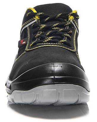 Eine Stahlkappe sowie ein metallfreier Durchtrittschutz schützen die Füße des Trägers vor den verschiedenen Gefahrenquellen von oben und unten. Ein PU-Spitzenschutz ermöglicht das Arbeiten im Knien auch ohne frühzeitigen Verschleiß der Schuhspitze.