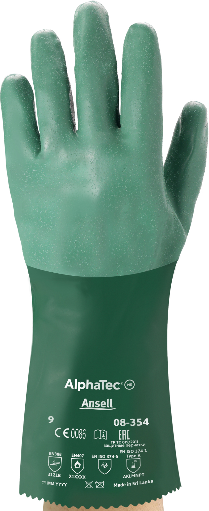 - Norm: EN 420:2003 + A1:2009, Kat. III, EN 388 (3.1.2.1.B), EN 374-1 / Type A (A.K.L.M.N.P.T), EN 374-5, EN 407 (X.1.X.X.X.X)