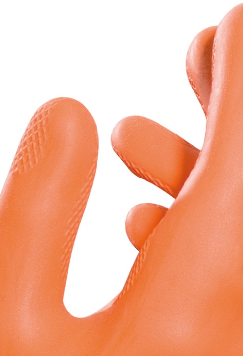 Flüssigkeitsdichter Schutzhandschuh, verstärkter Schutz bei schweren Arbeiten in Feuchtbereichen. Anwendung: Landwirtschaft, Fischzucht und -handel, Gerberei, Düngemittelherstellung, Herstellung und Transport von Baumaterialien, Sandstrahlung, Reinigungsarbeiten in der Industrie, Wasserhochdruck- und Industriereinigung.