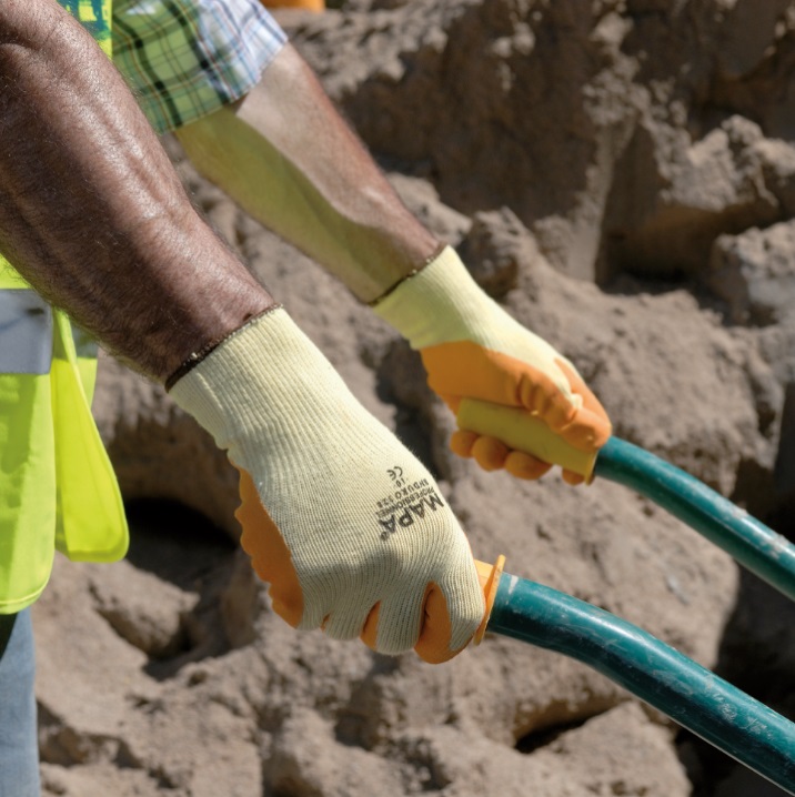Der Mapa Titan 328 (ehemals Enduro 328) ist ein Schutzhandschuh aus Baumwollstrick mit elastischem Strickbund. Handinnenfläche und Finger mit Naturlatex beschichtet; Handrücken unbeschichtet. Hohe Beweglichkeit durch die anatomische Form und das flexible Naturlatex. Starkes, rutschfestes Profil für hervorragende Griffsicherheit. Angenehmer Tragekomfort durch das atmungsaktive Material. Sehr gute thermische Isolierung. Silikonfrei. Anwendung: Bauwesen (Umgang mit Baumaterialien), Kommunale Dienste (Abfallentsorgung, Pflege von Parkanlagen), Warenannahme und -versand, Lagerarbeiten.