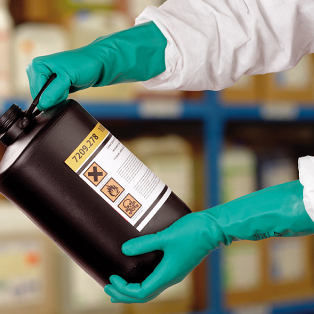 Ansells Nitrilhandschuhserie Sol-Vex® ist in einer großen Auswahl an Längen, Wandstärken, Größen und Innenausstattungen erhältlich. Sol-Vex® erzielt optimale Ergebnisse in trockenen und nassen Arbeitsbereichen, in denen ein erstklassiger Chemikalienschutz entscheidend ist. Dieser wieder verwendbare Handschuh bietet mit seiner einzigartig hohen Abriebfestigkeit einen bemerkenswerten Tragekomfort. Die Sol-Vex®- Nitrilhandschuhe sind die ideale Wahl für den sicheren Umgang mit aggressiven Chemikalien. Das Innenfutter aus Baumwollvelour bietet dem Anwender in Verbindung mit der Flexibilität und Beweglichkeit des Ansell Nitrilkautschuks einen außergewöhnlichen Tragekomfort. Sein Rautenfinish erhöht die Griffsicherheit. Das Hammerschlagprofil des Sol-Vex® reduziert durch seine griffige Oberfläche den Ausschuss von empfindlichen Teilen durch Beschädigung und damit die indirekten Kosten.