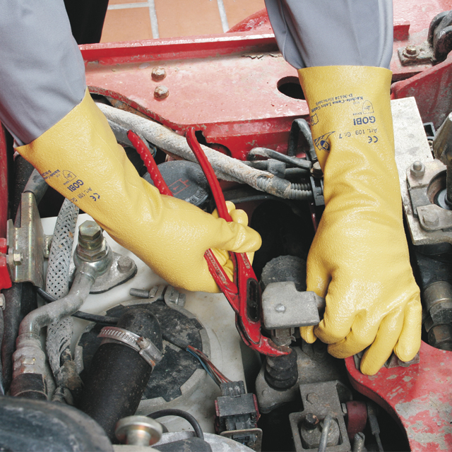 Der Gobi 109 besteht aus einem komplett mit Nitril beschichteten hochwertigen Baumwolltrikot. Neben dem guten mechanischen Schutz bietet er einen Flüssigkeitsschutz. Die dünne Beschichtung erlaubt ein hohes Maß an Tastgefühl. Mit seiner guten Temperaturbeständigkeit wird das Einsatzspektrum erweitert. Der Handschuh ist gemäß EU 1935/2004 für den Umgang mit und die Verarbeitung von Lebensmitteln geeignet.