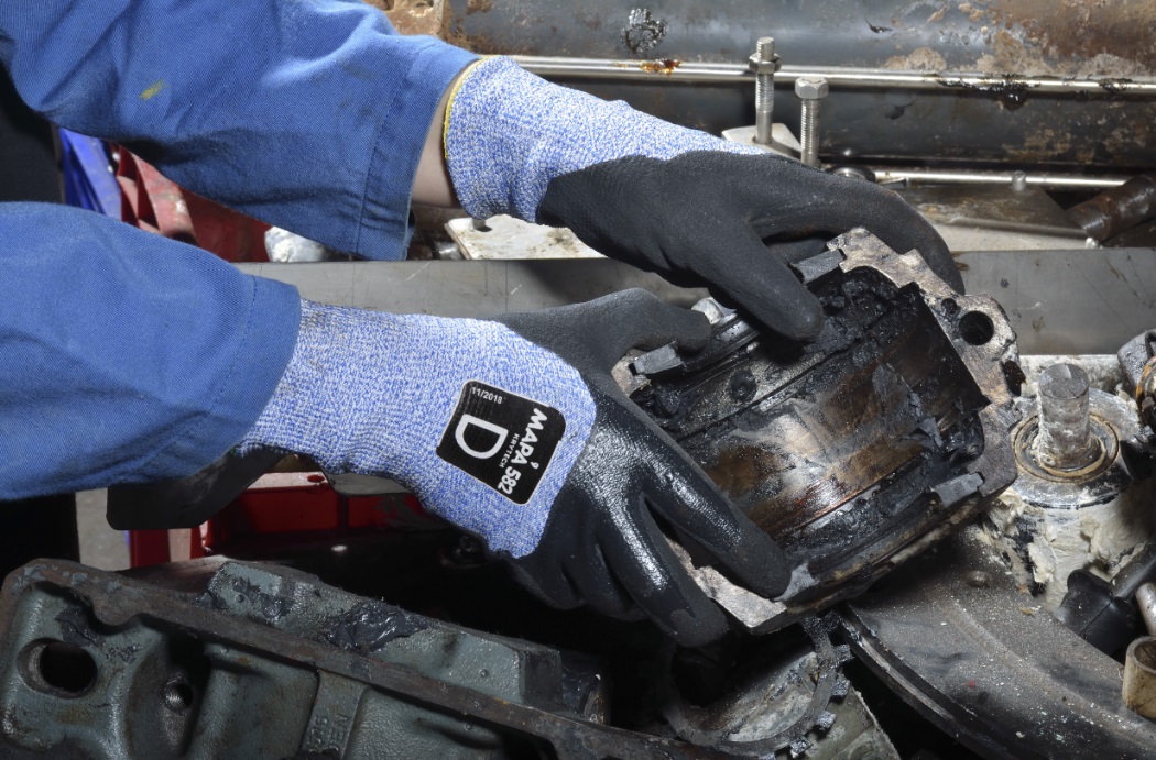 Der Mapa KryTech 582 (ehemals Krynit 582) ist ein Handschuh mit einem hohen Schnittschutz (Level 5) mit spezieller GRIP&PROOF-Beschichtung für Schutz vor Flüssigkeiten und optimierter Griffsicherheit bei Ölen und Fetten. Nahtlos gestrickt. Elastischer Strickbund. Hervorragende mechanische Eigenschaften. Nachgewiesene Langlebigkeit: Unveränderte Leistung nach 5 Waschvorgängen. Anwendung: Automobil-/Mechanische Industrie (Mechanische Wartungsarbeiten, Metallpressen, Umgang mit Metallfolien, Sortieren kleiner, schatfkantiger Teile, Stapeln öliger Paneelen), Umweltsektor (Abfallverwertung).