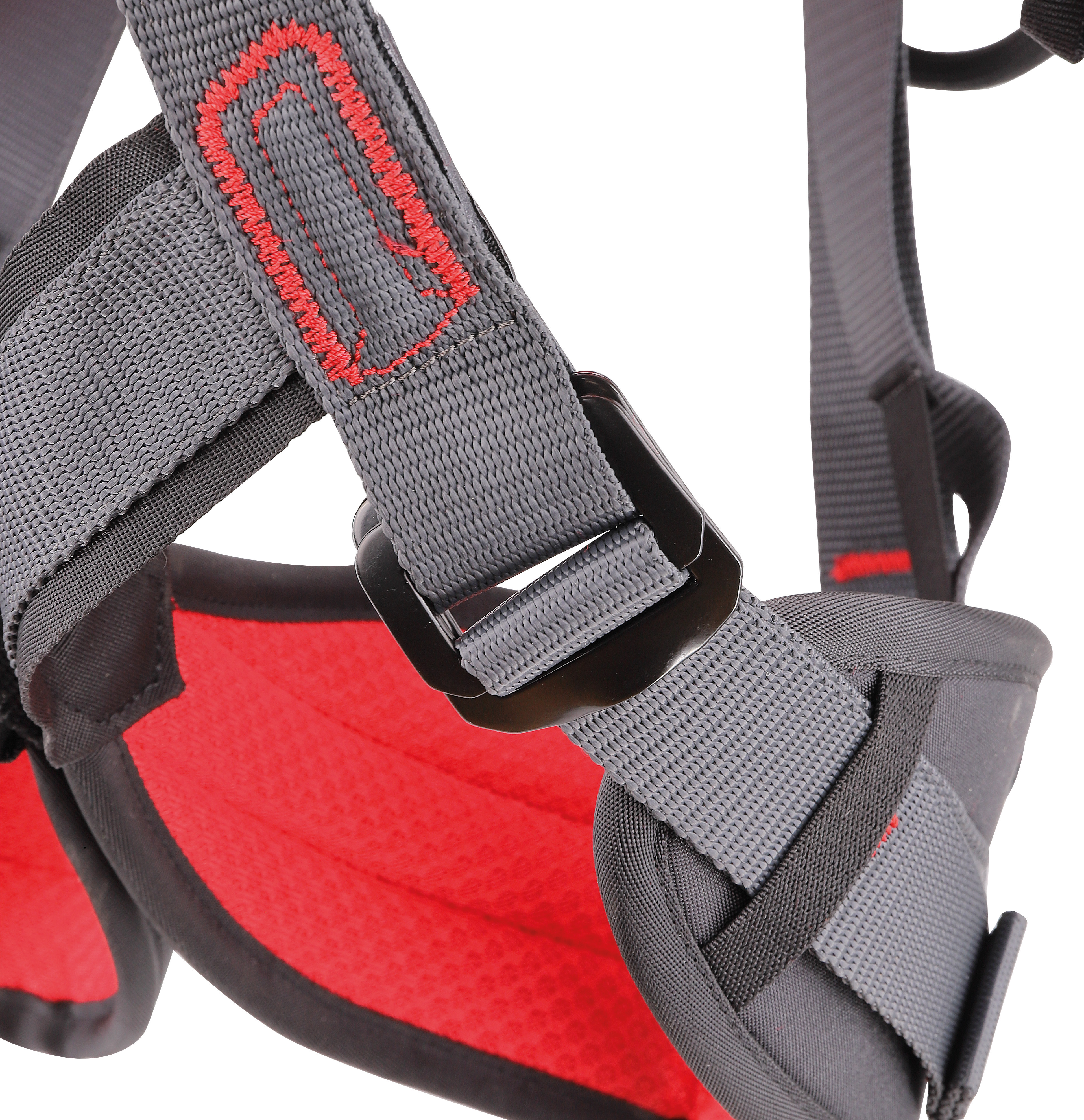 GT-Version ohne verfügbare Optionen für eine Seite und eine Verbindung. Im Falle der Grundlage der Empfehlungen entwickelt, die infolge unseres Forschungsprogramms „SUSPESI“ über das Hängesyndrom erarbeitet wurden. Alle Polsterungen, mit unterschiedlicher Dicke und Konsistenz, wurden dazu entwickelt, um alle beteiligten Körperteile richtig abzustützen. Ventraler Anschlagpunkt, gekennzeichnet durch zwei konzentrische Ringe: einer dient als Sitz für den Aluminiumring (für die Anbringung von Schlingen und Geräten), einer dient der Verbindung mit dem Brustgurt und der Bruststeigklemme. 5 Aluminiumbefestigungsösen: am Bauch zum freien Hängen, seitlich für die Arbeitsplatzpositionierung und das Zurückhalten, am Brustbein und am Rücken als Auffangschutz. Rückseitige Bandöse für das Zurückhalten. Ausgestattet mit dem innovativen Nexum-Karabiner, der sich durch eine große Kompaktheit für maximalen Komfort im Brustbereich auszeichnet, Keylock-Verschluss und 3Lock-Verriegelung, Verdrehschutz-Stift, der zum Einsetzen der Turbochest-Bruststeigklemme geöffnet werden kann. Verbindungsstelle an den Sicherheitslösungen an den Schulterträgern, für das Anbringen der Verbindungsmittel, wenn sie nicht verwendet werden. Ausgestattet mit NFC-TRACK-Chip zur digitalen Identifikation.