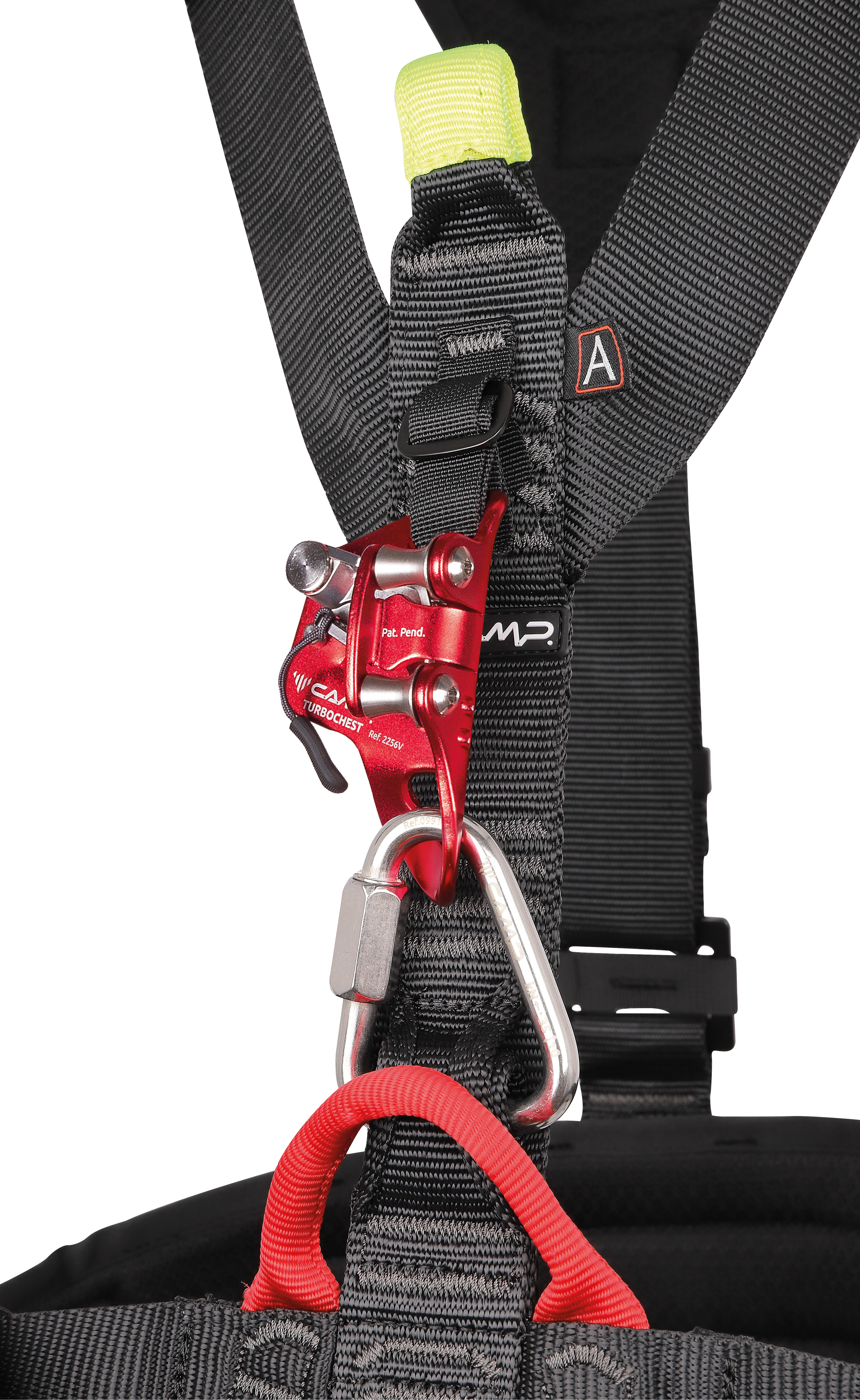Der RSQ Flex ist ein Ultraleichtgewicht, ideal für technische Reparaturen und Reparaturen am Sitz. Die textilen Befestigungspunkte, die traditionellen Schnallen an den Beinschlaufen und die minimale Polsterung sind Teil der kompakten und wesentlichen Ausstattung. Der andere Teil der Zwickel ist so konzipiert, dass er die beste Kombination aus Hängekomfort und Bewegungsfreiheit bietet, während die Polsterung im Brustbereich für einen hervorragenden Komfort im Halsbereich sorgt. Der Bauchriemen hat eine große Öse für die Verbindung mit einem Schnellkettenglied oder einem öffenbaren Ring für das Anbringen der Bruststeigklemme Turbochest, welche über den eigenen Riemen gespannt werden kann.