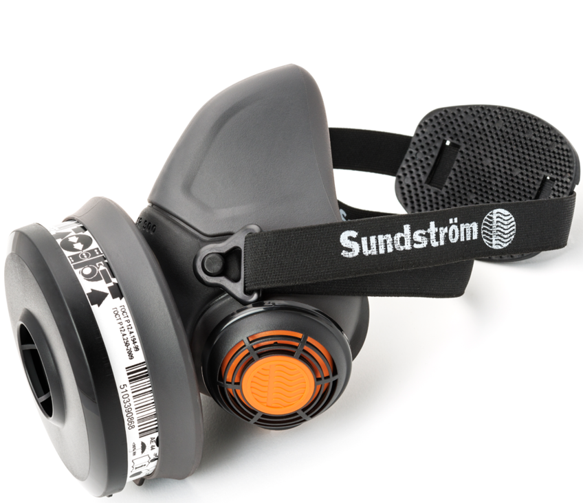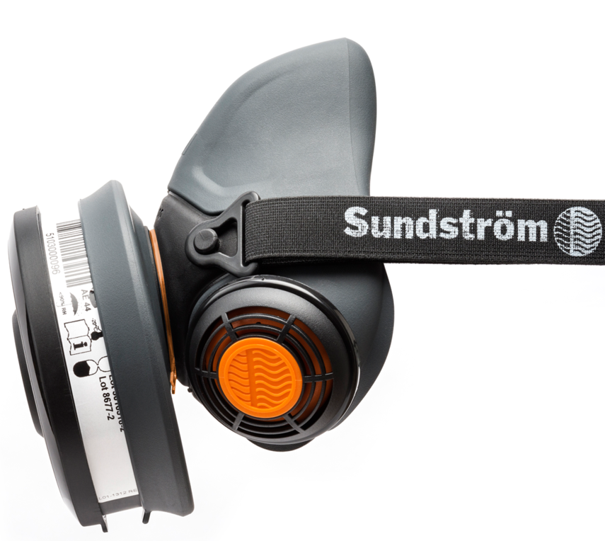 Die Halbmaske SR 900 wird aus TPE (thermoplastische Elastomere) und polypropylen (PP) hergestellt und ist in drei Größen S, M und L erhältlich. Die Maske ist mit zwei Ausatemventilen ausgestattet, die sich durch äußerst geringen Atemwiderstand auszeichnen. Die Ventilkappen mit Abschirmer schützen die Ausatemmembrane gegen Staub und Farbpartikel. Material und Farbpigmente des Maskenkörpers sind für Lebensmittel zugelassen (FDA), so dass die Gefahr von Kontaktallergien auf ein Minimum beschränkt wird. Die einfach verstellbaren Tragebänder stellen eine V-Schleife dar und besitzen eine große schalenförmige Kopfplatte, die eine bequeme und sichere Einstellung ermöglicht. Die Halbmaske SR 900 wird verwendet mit: Filtern aus dem Sundström-Sortiment. Dem Rückenhalter Filtersystem SR 905, gemäß EN 12083. Dem SR 307 oder SR 507 Druckluftzusatz, der als Atemgerät mit Dauerzufluss an einer Druckluftversorgung dient, gemäß EN 14594:2005. Die Gebläseeinheit SR 500/SR 700 mit zugelassenen Filtern gehört zum Sundström-Atemschutz-System mit Gebläse, das der EN 12942:1998 entspricht. Halter für Vorfilter sind in der Lieferung enthalten. Aufbewahrung am besten in Box SR 230 bzw. Aufbewahrungstasche SR 339.