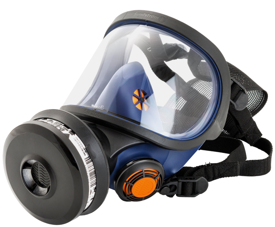 Die Vollmaske SR 200 ist aus Silikon hergestellt und passt in der Größe zu den meisten Gesichtsformen. Die Maske ist mit drei Einatme- und zwei Ausatemventilen versehen, so dass ein äußerst geringer Atemwiderstand gewährleistet ist. Die Ventilklappen der Ausatemventile mit Abschirmung schützen das Ventil und die Membrane gegen Staub und Farbpartikel. Die Konstruktion und Platzierung der Ausatemventile verbessern die Möglichkeiten zu Kommunikation. Material und Farbstoff des Maskenkörpers, FDA bzw. BGA, sind für den Lebensmittelbereich zugelassen, was die Gefahr von Kontaktallergie minimiert. Die einfach verstellbaren Haltebänder sind am Visierrahmen und an den Ausatemventilen befestigt, was in Verbindung mit einem großen Kopf Netz für eine bequeme und sichere Passform sorgt. Das sphärisch geformte Visier aus kratzfestem Polykarbonat bietet ein großes Sichtfeld. Die Maske wird entweder als Filterschutz in Verbindung mit einem Filter aus Sundströms Filtersortiment oder als Atemgerät mit kontinuierlicher Luftzufuhr zusammen mit Druckluftzusatz SR 307 eingesetzt. SR 200 mit Schlauch SR 550 (PU) oder SR 551 (Gummi) ergänzt kann auch als Kopfteil mit Sundströms Gebläse SR 500 oder SR 700 verwendet werden. Halter für Vorfilter sind in der Lieferung enthalten. Die Vollmaske SR 200 ist zusammen mit dem Gebläse SR 500 EX für den Einsatz in explosiven Umgebungen zugelassen. Aufbewahrung am besten in Box SR 344 alternativ Aufbewahrungstasche SR 339-1 bzw. SR 339-2.