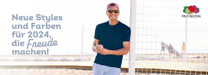 Egal, wonach Sie in der Welt der Promotionskleidung auch immer suchen – es gibt eine Marke, die alles hat: Fruit of the Loom. Das aktuelle Produktsortiment von Fruit of the Loom bietet mehr Styles, Auswahlmöglichkeiten, Größen und Farben als je zuvor. Seit über 165 Jahren sind wir einer der führenden Bekleidungshersteller. Unser Angebot, unsere Qualität, unser Service und unser Preis-Leistungs-Verhältnis sind unübertroffen. Jedes Kleidungsstück unserer Kollektion wird nach hohen ethischen Standards produziert und ist so designt, dass bei allen Veredelungsoptionen perfekte Ergebnisse erzielt werden. Es spielt keine Rolle, ob Sie nach Freizeit-, Promotions- und Berufskleidung oder nach Kleidung für Musikmerchandising, Schule oder Sport suchen: Unsere umfassende Kollektion an T-Shirts, Sweats, Hemden, Funktionskleidung und mehr enthält die passenden Styles für Herren, Damen und Kinder. Was die Auswahl an Farben und die Sortimentstiefe betrifft, ist auf uns immer Verlass. Mit Fruit of the Loom bekommen Sie „Everything Under the Sun“.
