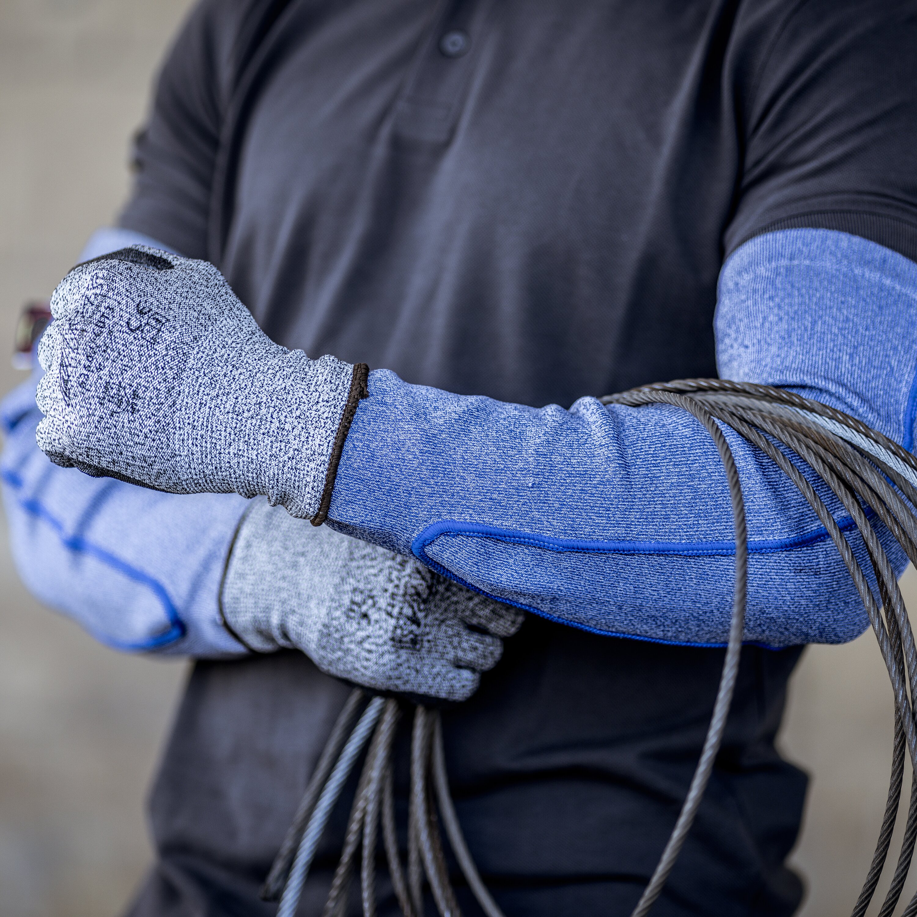 NITRAS TAEKI5 Schnittschutz-Armschoner, blau, Länge 45 cm, höchster Schnittschutz (Leistungsstufe 5), höchster Tragekomfort, paarweise im Polybeutel verpackt, TAEKI5-Spezialgarn, V-Form, kann einfach über z. B. Jacken getragen werden.