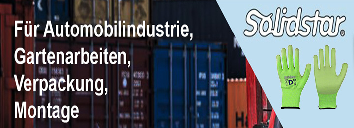 Arbeitshandschuhe finden Gebrauch in unzähligen industriellen Betrieben bei der Arbeit mit Maschinen, Werkzeugen, scharfen Kanten, Chemikalien usw. Handschuhe von Solidstar eigenen sich perfekt für Arbeiten in der Elektro- & Autoindustrie, Verpackungen, Montagen u.v.m. Auch zu Hause fallen Arbeiten an, welche den Schutz Ihrer Hände verlangen. Zum Beispiel bei der Reparatur des Autos, Handwerksarbeiten oder im Garten. Die Marke Solidstar bietet Ihnen eine Kollektion an verschiedenen Arbeitshandschuhen, Montagehandschuhen und Mechanikerhandschuhen an, um Ihren Anforderungen gerecht zu werden. Schutzhandschuhe mit PU-Beschichtung, Latexschaumbeschichtung, Nitrilbeschichtung und weitere Varianten. Außergewöhnliche Tasteigenschaften und eine hervorragende Griffigkeit bei nassen und trockenen Bedingungen erleichtern Ihre Arbeit und gewährleisten optimalen Schutz. Arbeitshandschuhe von Solidstar sind atmungsaktiv, nahtlos verarbeitet und besitzen eine ergonomische Passform in Kombination mit einer ausgezeichneten Flexibilität. Mit Solidstar kaufen Sie Markenqualität und den besten Schutz für Ihre Hände. Diese Handschuhe ermöglichen Ihnen präzises Arbeiten, vermeiden Fingerabdrücke und sind fusselfrei.