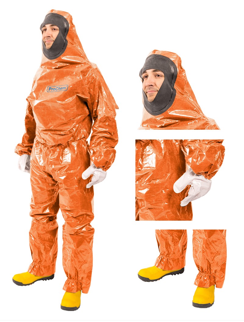 The ProChem® II is primarily used for tank and sewer cleaning, handling solid and liquid hazardous substances or for decontamination work and hazardous goods operations. Elasticated sleeves and legs and an elasticated waist ensure an optimum fit and the generously cut crotch area provides optimum freedom of movement. The horizontal entry at the back with a protected wrap-around panel and Velcro fastener provides a tight seal. A butyl face seal provides an optimum seal on the outside of full face masks.