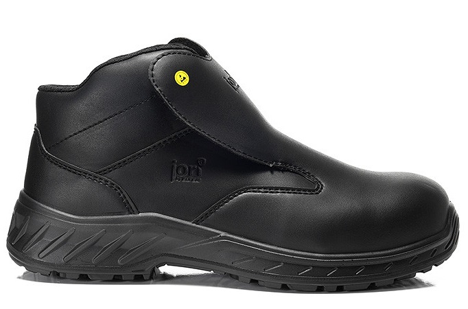 The leather and metal-free S3 safety lace-up boot jo_CLEAN Slipper black Mid ESD S3 from Jori by ELTEN protects the feet with a plastic toe cap and metal-free penetration protection. At the same time, the upper material made of hydrophobic microfiber and the breathable textile lining ensure a comfortable shoe climate. The SRC-certified jo_MONO PU outsole is very lightweight and cushions every step. The ESD-compatible boot is available in sizes 36 to 48.