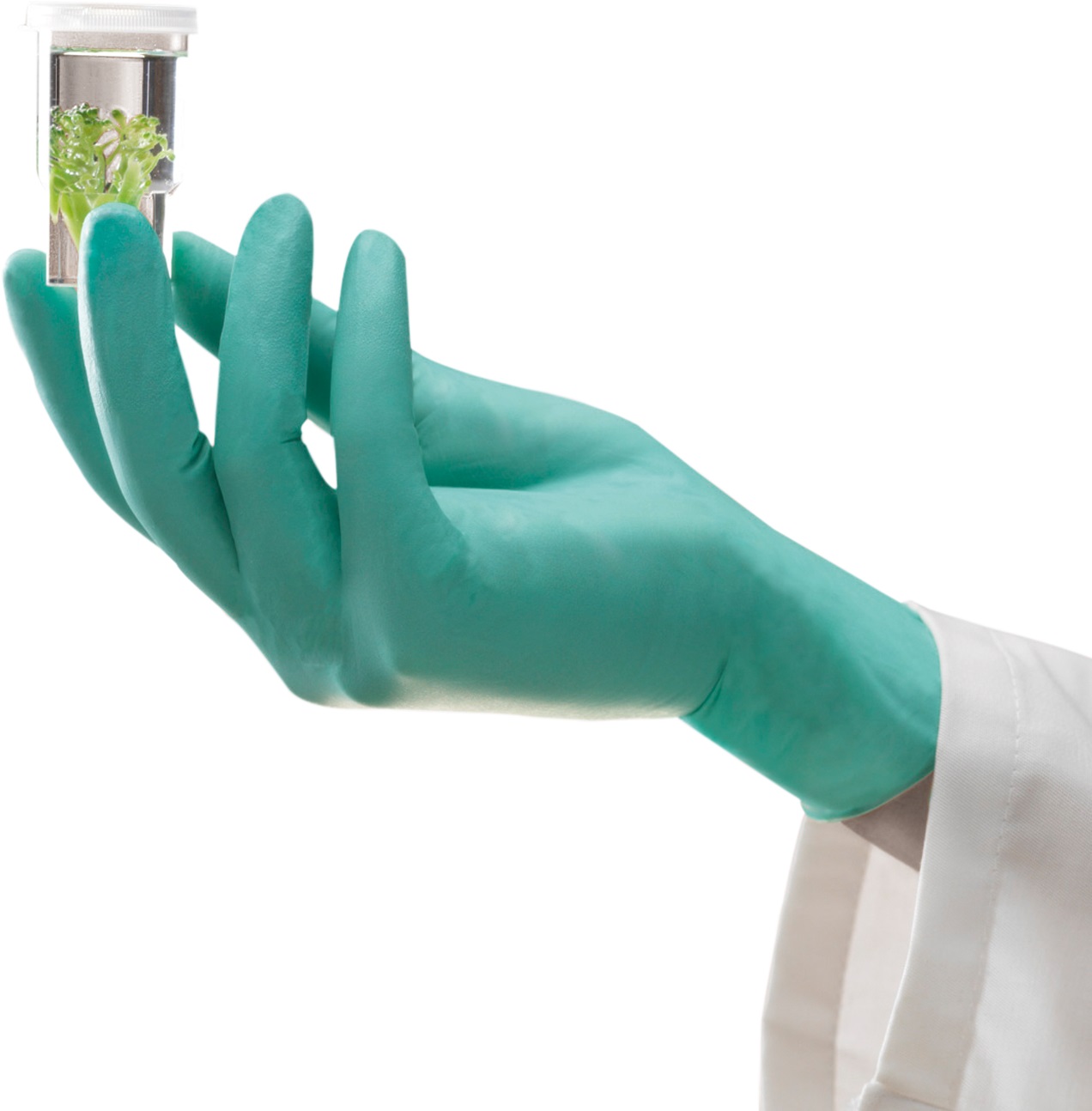The Microflex® NeoTouch® gloves were the first neoprene disposable gloves for industrial work. By avoiding natural latex, the gloves in the Microflex® NeoTouch® range are suitable for protection against type I allergies. Their powder-free nature limits the risk of dermatitis. They offer excellent protection against acids, bases and alcohols. Their exclusive formulation makes Microflex® NeoTouch® gloves convincingly the most comfortable disposable synthetic gloves on the market today. The PU inner coating of Microflex® NeoTouch® gloves ensures easy on/off. Their textured fingertips provide a secure dry and wet grip. The rolled edge provides a secure fit and their green color simplifies their identification. Microflex® NeoTouch® gloves have an AQL of 1.5 for micro-holes. This meets the regulatory requirements for medical gloves.
