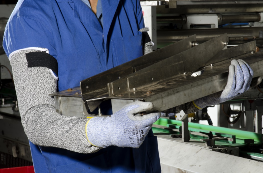 thumb hole made of polyamide fine knit for optimal hold for more safety, for better comfort and for good mobility of the hand. Velcro strap for width adjustment on the upper arm. Application Mechanical industry, automotive industry: mechanical maintenance work, assembly of fine sheet metal, vehicle assembly, handling of metal parts, glass industry.