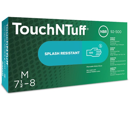 The nitrile TouchNTuff offers four times the puncture resistance of natural latex gloves and three times the puncture resistance of neoprene disposable gloves. Latex-free: no risk of type I allergy. Primary skin irritation studies and insult patch tests have not demonstrated evidence of skin irritation or allergic contact dermatitis. Uniquely formulated with Thin Nitrile Technology, this glove is easy to put on and take off, providing a secure wet and dry grip. This glove is versatile applicable in numerous working areas.The gloves meet the requirements of Regulation (EC) 1935/2004 on "materials and articles intended to come into contact with food" and Regulation (EC) 2023/2006 on "good manufacturing practice for materials and articles intended to come into contact with food".Areas of application: Laboratory work, chemical industry, accident assistance services, electronics and other complex assembly work, product protection, pharmaceutical industry	Standard: EN 374	Protection class: C