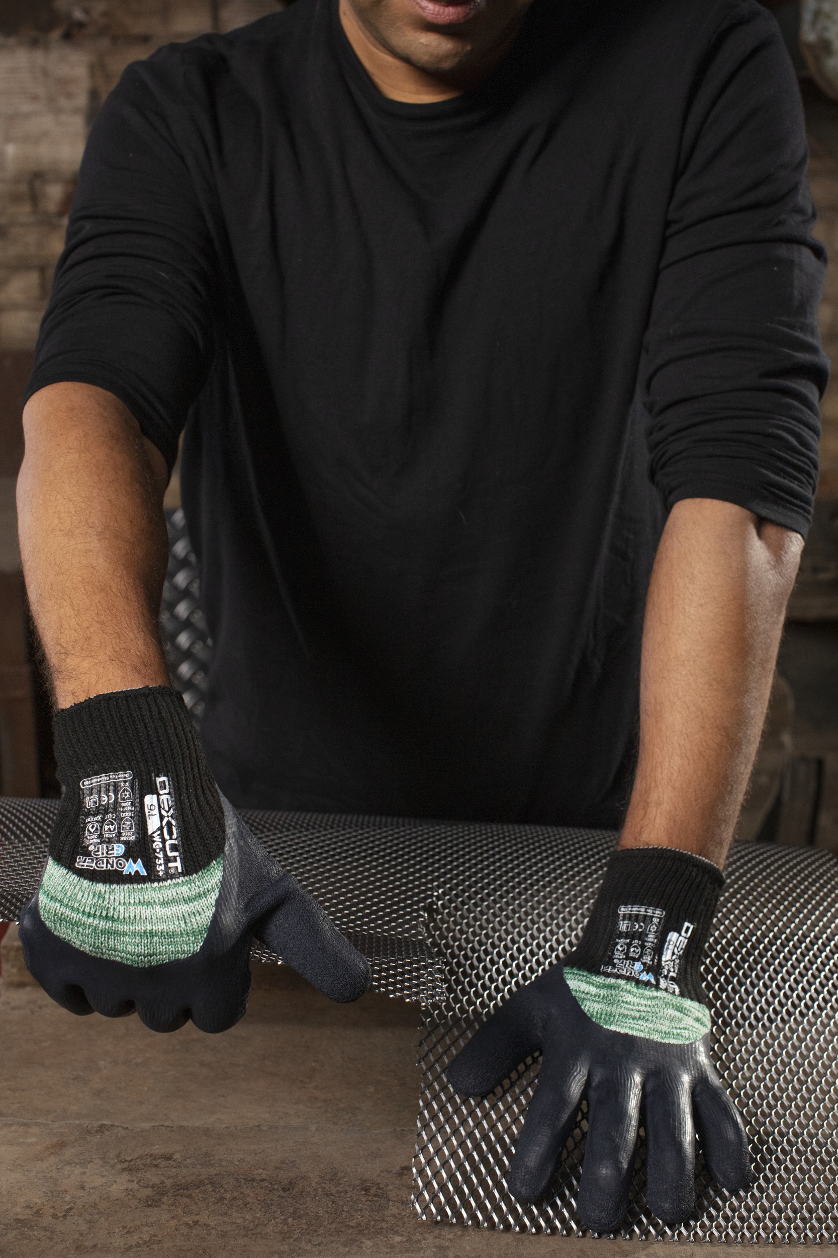 The Dexcut® WG-733+ is designed for heavy-duty work in dry or slightly greasy environments with medium to heavy cutting risks. The HDML™ coating, specially developed by Wonder Grip®, ensures a non-slip surface, exceptional anti-wear properties and double protection against thermal risks. The comprehensive protection of our unique WG-733+ makes it the ultimate glove for all-round use in semi-dry environments.