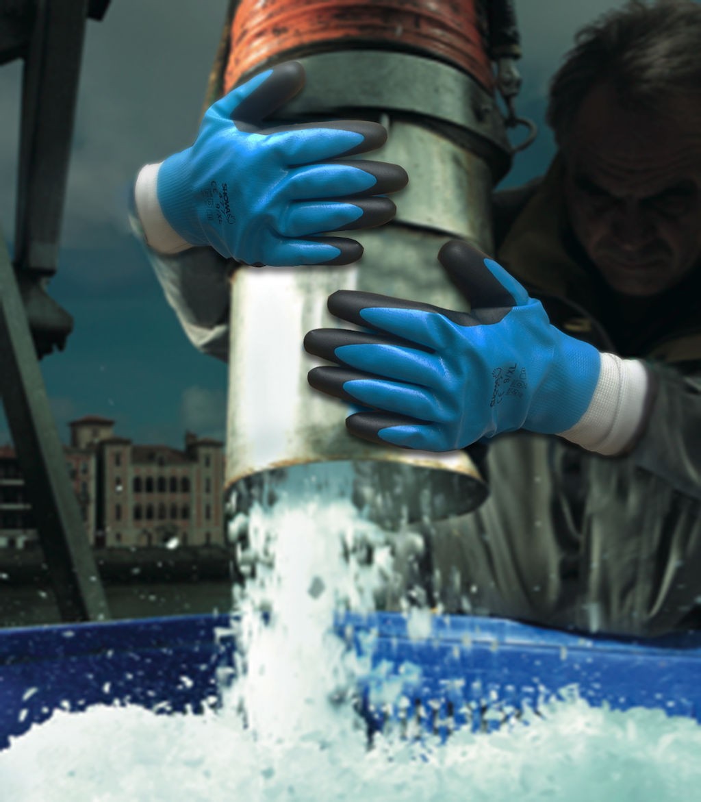 Designed to keep hands warm and dry in the most extreme environments, the 477 cold-resistant gloves combine thermal insulation with tactile grip. A foam gripping surface and double nitrile coating ensure precision in wet and oily environments, while the acrylic inner glove provides cold weather protection. Applications: Concreting, gutter and downspout, insulation, washing and cleaning, planting & repotting, bottling, water/sewer cleaning, plumbing, drains, piping, shipping/receiving. Advantages: Seamless fabrication, Cold resistance, Water repellent, Flexible, Abrasion resistant, Special grip, Thermal insulation, Tight fit, Impervious Features: Standards: EN 420:2003 + A1:2009 Cat. II, EN 388 (4.2.3.1.X), EN 511 (0.1.1) Coating material: foam nitrile, nitrile finish: full coating, double coating - knitted cuff Backing material: Solid insulated acrylic, nylon, polyester, seamless knitted Grip: Foam Elasticated cuff Ergonomic Palm immersed in nitrile foam Insulating Full nitril