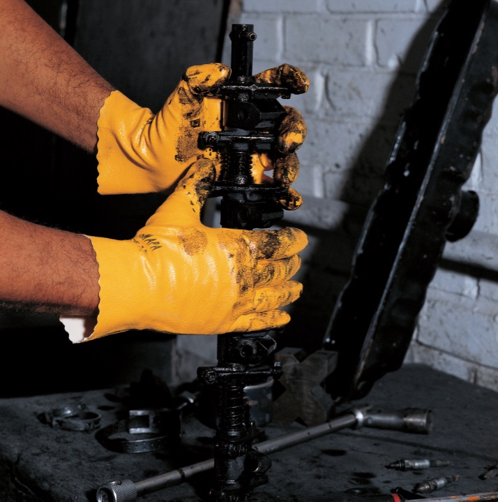 The MapaDextram 375 is a mechanical protective glove with cuff and seamless grip surface. Nitrile coating provides protection against moisture, oil and grease splashes. Good mobility and highe Abriebfestigkeit for long durability. Comfortable to wear. Application Precision mechanics, assembly work, sanding, handling oily machine parts, painting, carpentry, packaging and painting work.