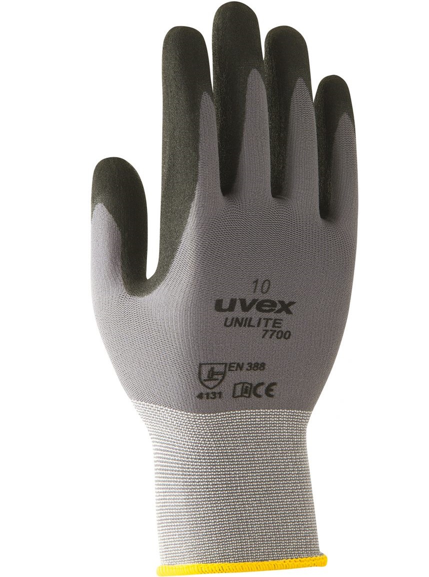 The uvex unilite 7700 is a flexible yet very robust knitted glove with NBR polyurethane coating, which is ideal for delicate assembly work and other sensitive activities.