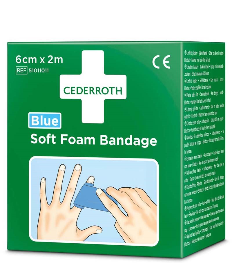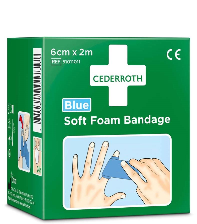 Cederroth Soft Foam Bandage 4.5 m is suitable as a plaster and bandage. The bandage fits all types of minor wounds. Cold, wetness or dryness cannot harm the bandage. It does not dissolve in water. Cederroth Soft Foam Bandage Blue is a self-adhesive, adhesive-free plaster. This way it does not stick to skin or hair. Simply tear off the appropriate length and bandage the injured area. If bleeding is heavy, fold a piece of Soft Foam Bandage into a swab and apply a pressure bandage. Cederroth Soft Foam Bandage is ideal for quick, easy wound care. Suitable for refilling the Wound Care Dispenser.