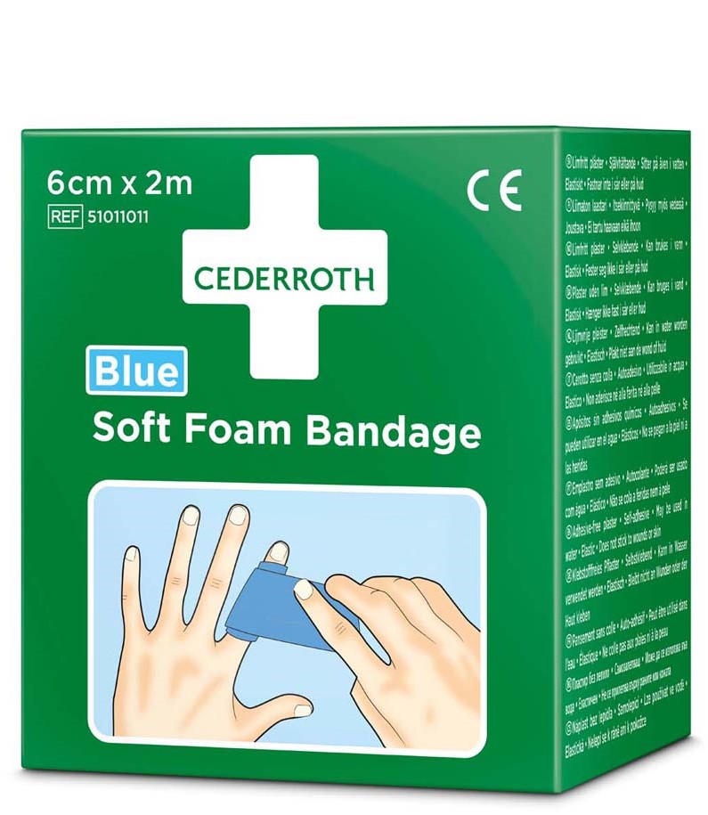 Cederroth Soft Foam Bandage 2 m is suitable as a plaster and bandage. The bandage fits all types of minor wounds. Cold, wet or dryness can not harm the bandage. It does not dissolve in water. Cederroth Soft Foam Bandage Blue is a self-adhesive, adhesive-free plaster. This way it does not stick to skin or hair. Simply tear off the appropriate length and bandage the injured area. If bleeding is heavy, fold a piece of Soft Foam Bandage into a swab and apply a pressure bandage. Cederroth Soft Foam Bandage is ideal for quick, easy wound care. Matches the first aid station. Now available as a single pack.