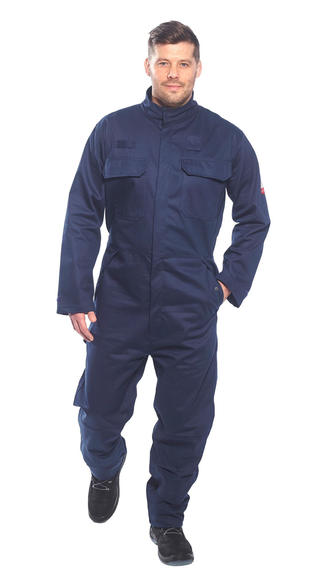 Product information This overall is perfect for the petrochemical industry. The highly technical fabric provides protection against flames, heat, iron splashes, chemicals, arcing and offers antistatic protection. The high collar and the pocket flaps with press studs offer maximum protection. Bizflame™ Multinorm workwear Multinorm workwear offers a wide range of applications with optimum protection for the wearer. The fluorescent colours and the flame retardant reflective tape protect the wearer in poor visibility conditions. 3-fold seams for good durability, brass zippers and industrial washable flame-retardant reflective tape. Multiple pockets for safe applicationewahreand comfortable working.Flame retardant This industry-leading collection offers multi-standard protection for potentially explosive atmospheres. These state-of-the-art products are the result of many years of experience, state-of-the-art technology and market research. A commitment to the health, safety and comfort of
